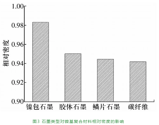 2.3 石墨類型對鎳基復合材料密度的影響