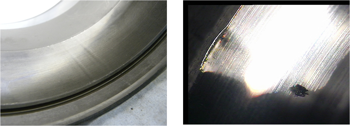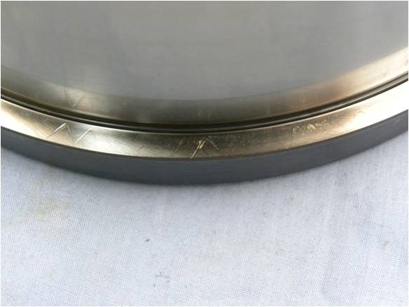 在旋轉(zhuǎn)過程中,由于發(fā)生振動(dòng)而造成的偽壓痕則表現(xiàn)為間距較小的波紋狀凹槽。旋轉(zhuǎn)過程中的旋轉(zhuǎn)件的壓痕基本都是360度方向都存在的。