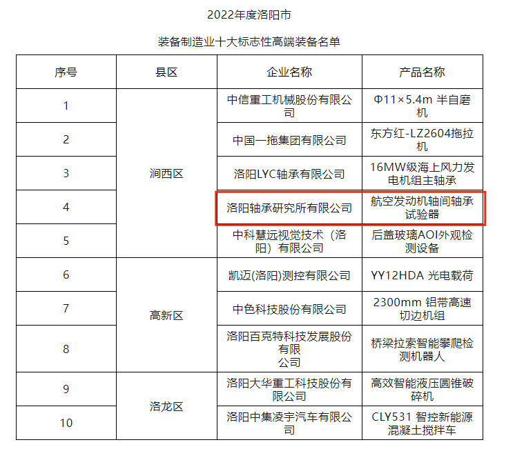 軸研所產(chǎn)品入選洛陽市裝備制造業(yè)十大標志性高端裝備